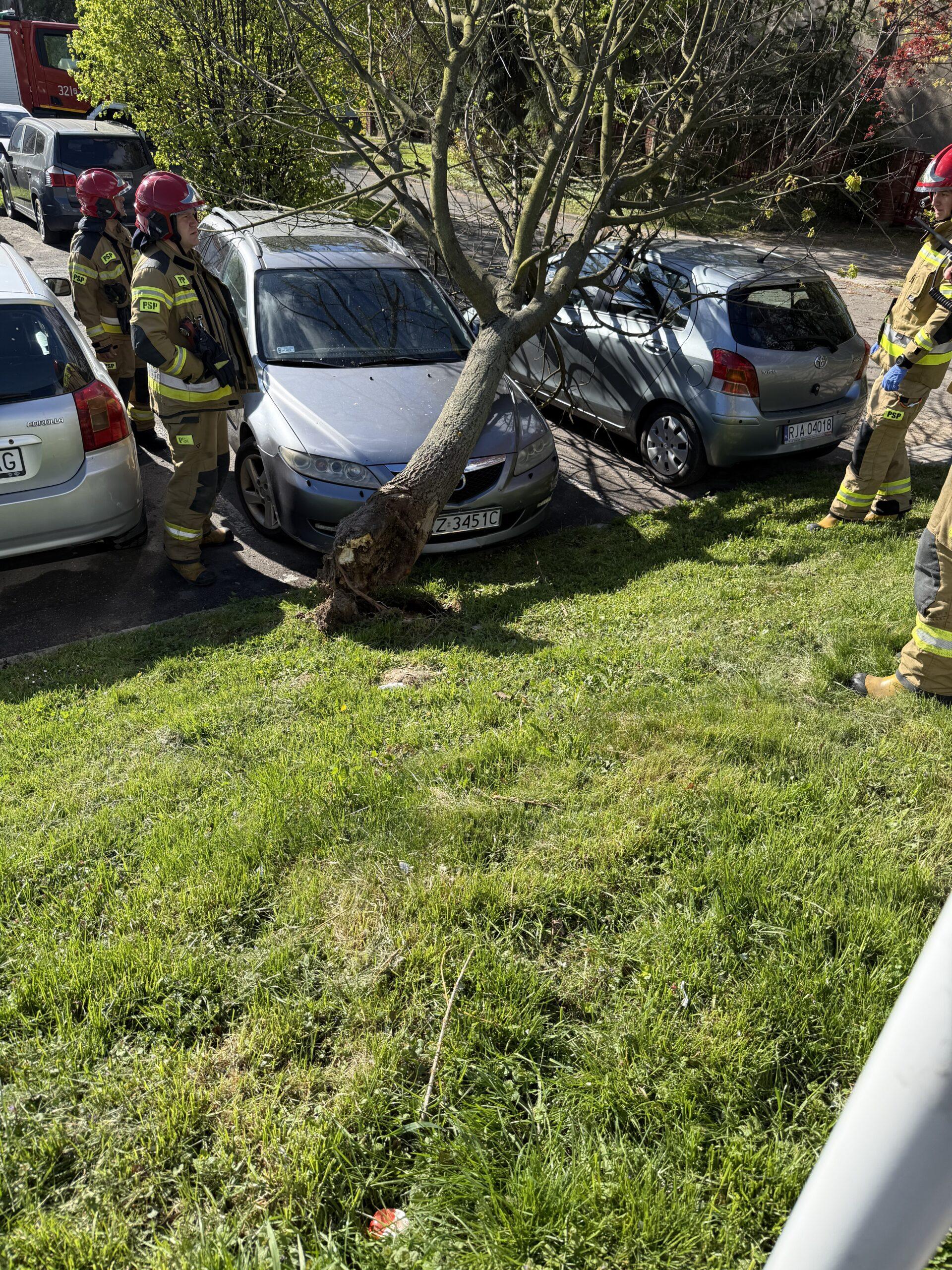 Zdarzenie to jeden z efektów przechodzącego nad regionem frontu. Na miejscu pracowały zastępy Państwowej Straży Pożarnej, które przy użyciu specjalistycznego sprzętu usunęły pień oparty o maskę i dach pojazdu. Uszkodzenia karoserii są widoczne, jednak najważniejszą informacją jest fakt, że w momencie upadku drzewa w samochodzie ani w jego bezpośrednim sąsiedztwie nikt nie przebywał.